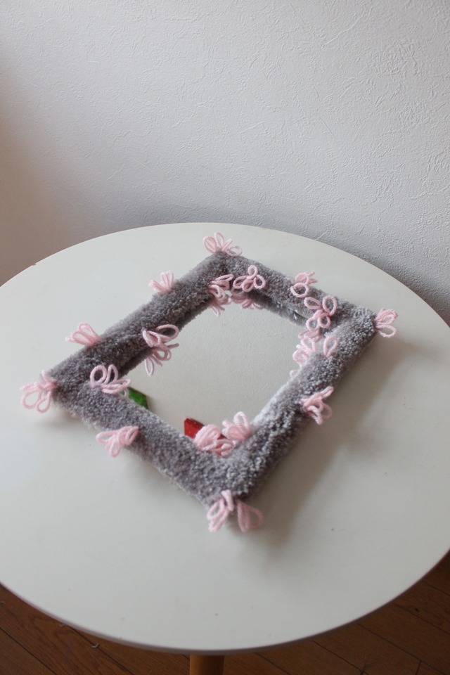 rug mirror M size【gray×pink】