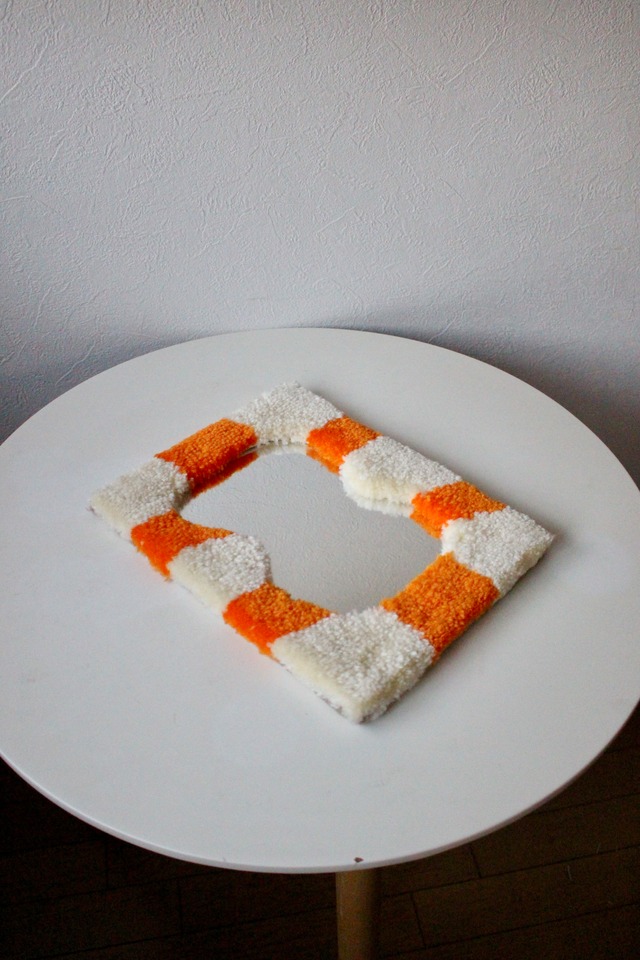 Rug mirror small . 好きな場所に、好きな時に、好きな様に使っていただきたいという思いを込めて…. お部屋を明るく見せるアイテム♡ 発色が良くインスタ映えもします♪ 【サイズ】31cm×22.8cm ※多少の誤差がございます。 【カラー】white×orange 【商品説明】 鏡、小物置きとしてお使いいただけます ◆ご注文前に必ずお読み下さい。 ご理解いただいたお客様へ配送させて頂きます。 ・お使いの端末によっては色の見え方が多少異なる場合がございます。 ・アクリル毛糸を使用している為お洗濯はお控えください。 ・汚れた際は薄めた中性洗剤で丁寧にお拭き取り下さい。 ・毛糸が飛び出た場合はハサミでカットして下さい。 ・重いものを乗せると毛糸の潰れの原因になりますのでお控えください。 ・床面の状態によっては滑る場合がございますので滑り止めシート等と併用をお勧めしております。 ハンドメイドとタフティングの特性をご理解の上ご購入いただき、ご購入後の返品、交換はお受付できません。 ラグマット ラグ タフティング ハンドメイドラグ ウォールアート ラグミラー