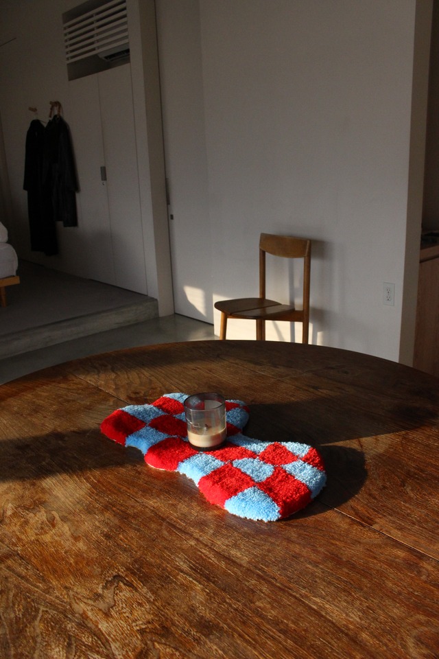 NEW series MOJYA mat . 好きな場所に、好きな時に、好きな様に使っていただきたいという思いを込めて…. お部屋を明るく見せるアイテム♡ 発色が良くインスタ映えもします♪ 【サイズ】約40cm×22cm ※多少の誤差がございます。 【商品説明】 小物置きや壁にかけたりしてお使いいただけます ◆ご注文前に必ずお読み下さい。 ご理解いただいたお客様へ配送させて頂きます。 ・お使いの端末によっては色の見え方が多少異なる場合がございます。 ・アクリル毛糸を使用している為お洗濯はお控えください。 ・汚れた際は薄めた中性洗剤で丁寧にお拭き取り下さい。 ・毛糸が飛び出た場合はハサミでカットして下さい。 ・重いものを乗せると毛糸の潰れの原因になりますのでお控えください。 ・床面の状態によっては滑る場合がございますので滑り止めシート等と併用をお勧めしております。 ハンドメイドとタフティングの特性をご理解の上ご購入いただき、ご購入後の返品、交換はお受付できません。 ラグマット ラグ タフティング ハンドメイドラグ ウォールアート ラグミラー